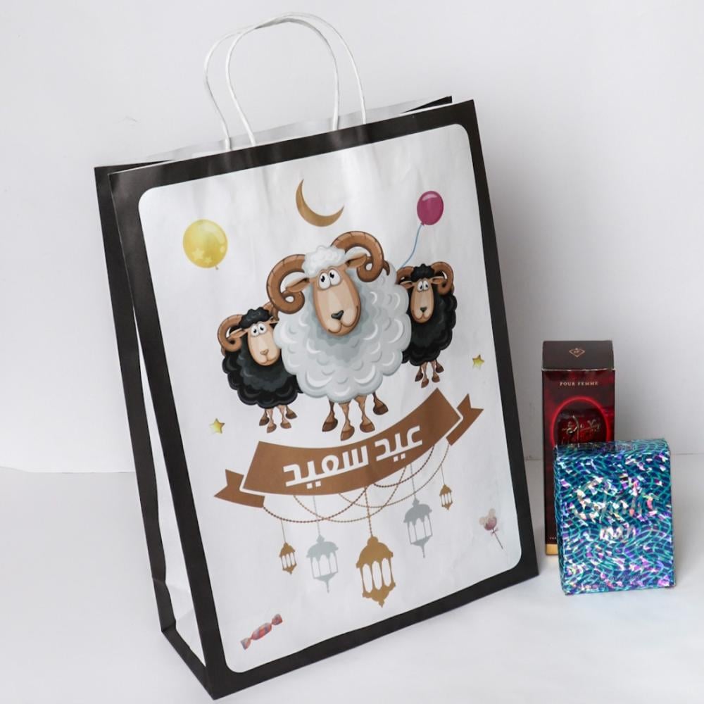 أكياس هدايا ورقية لعيد الأضحى لون أبيض مجموعة(عدد 3 قطعة)