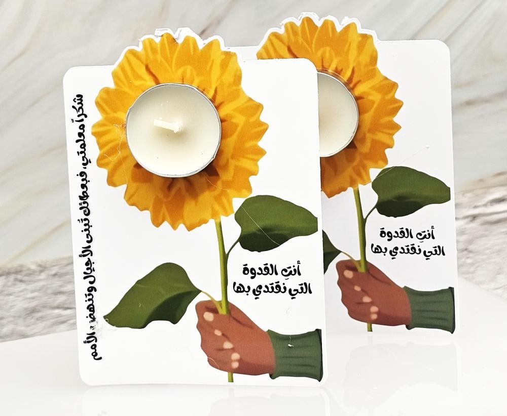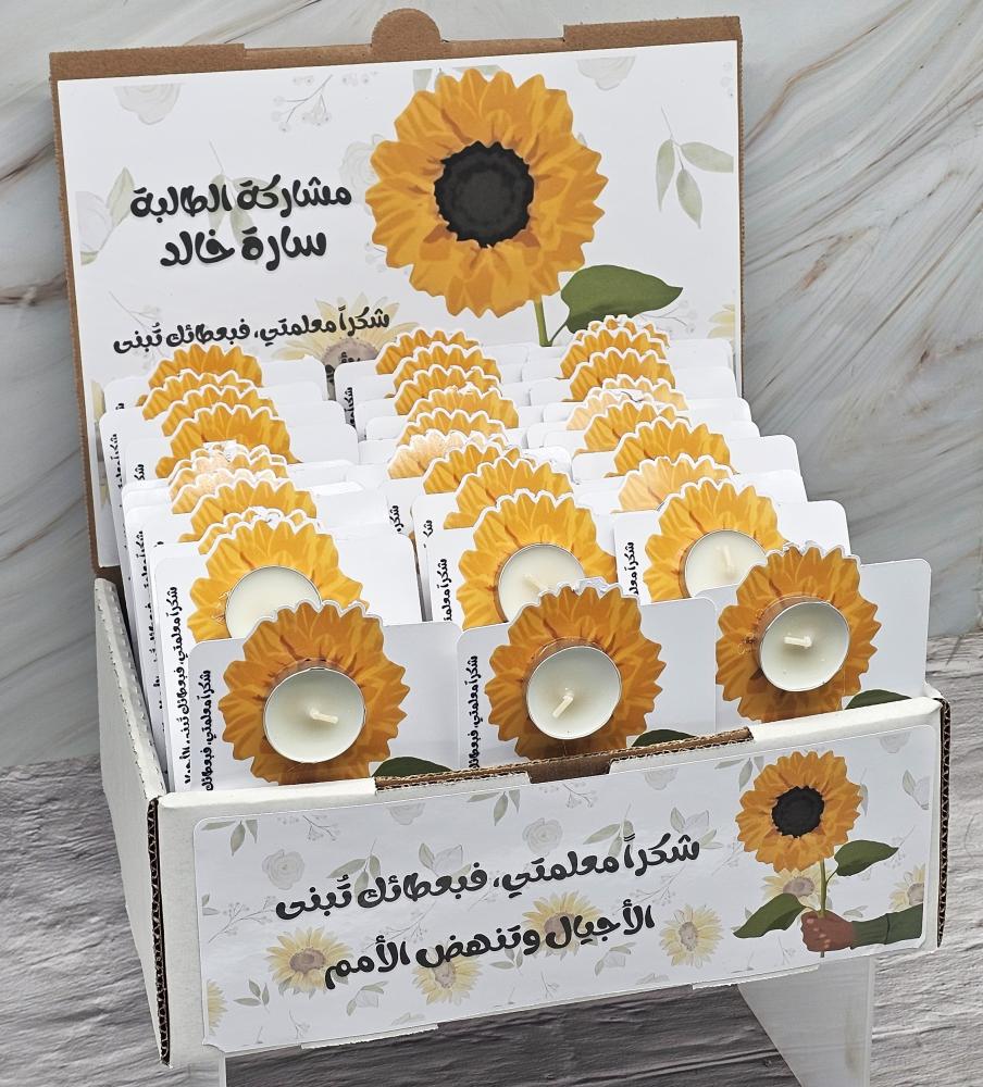 🌻 بكج توزيعات شموع - ثيم وردة عباد الشمس | هدية يوم المعلم 🌻