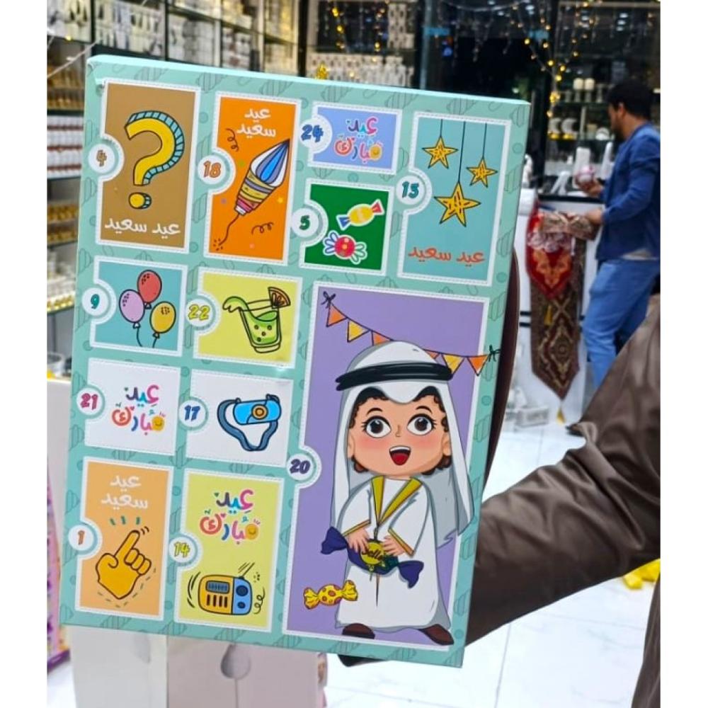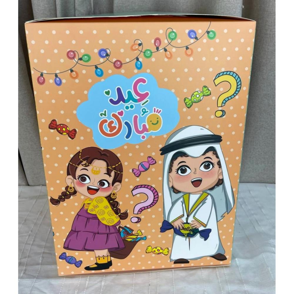 البوكس مطبوع من كامل الجهات ب رسومات مميزة للأطفال للعيد فكرته يتم تعببة العلب الداخلية بهدايا او حلويات حسب كل مساحة متاحة يحرك الطفل عجلة الحظ وحسب الرقم يضغط على الكرتون ليتم فتح الفتحة واخراج الهدية او الحلويات فكرته مبتكرة لتوزيعات العيد يشمل: مساحات داخلية مقسمة للتعبئة حبل للحمل مادة الصنع : ورق مقوى مقاس البوكس : 26 * 26 * 36 سم ملاحظة: المنتج لا يشمل التعبئة