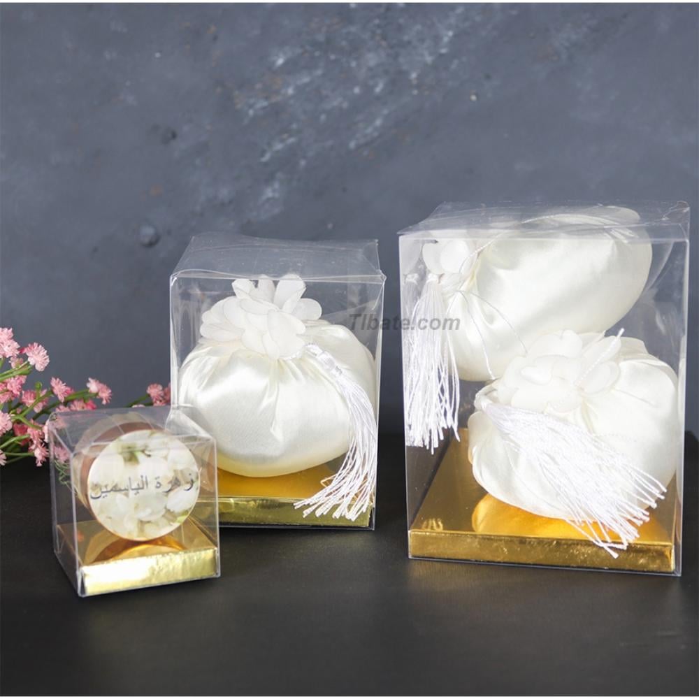 السعر لـعدد 12 قطعة من المنتج مقاس البوكس: 12X10X10 سم بوكسات وعلب بلاستكية شفافة وقاعدة بألوان ذهبي وفضي والأبيض تناسب الاذواق والاحتياجات المختلفة .
