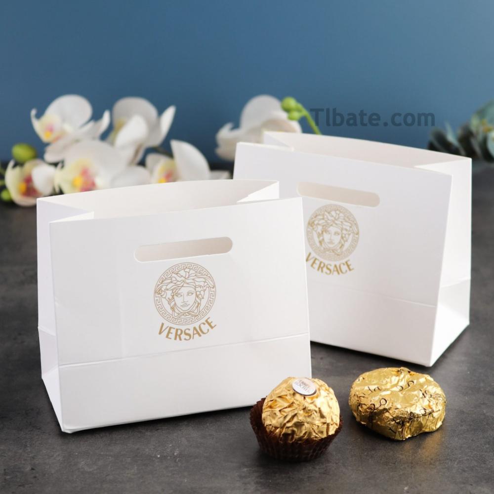 المقاس: 12 * 9 * 6 سم التصميم : كيس مستطيل باللون الأبيض ، يتميز بطبعة شعار الماركة العالمية فيرساتشي باللون الذهبي في منتصف الكيس ، مع فتحة مستطيلة في القرب من نهاية الكيس من أعلى حتى يمكن حمله من خلالها.