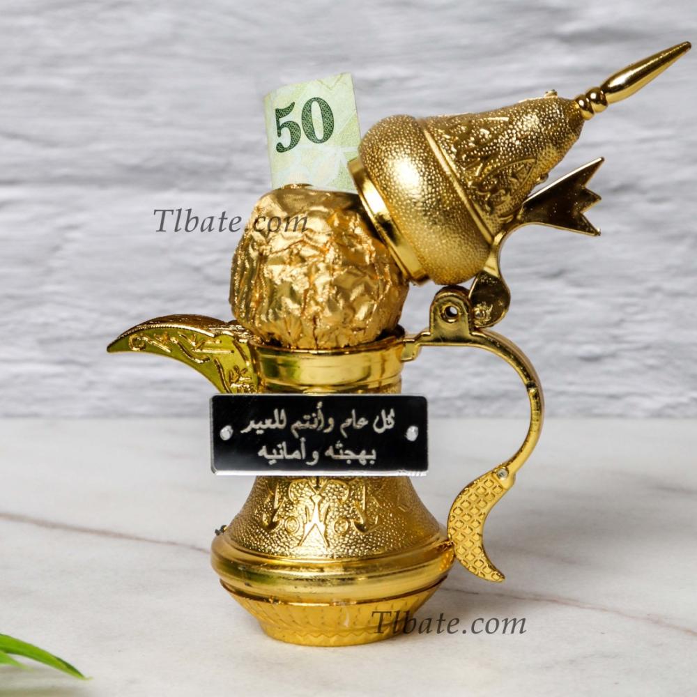 - شارك مشاعر البهجة والفرح مع عائلتك وأحبابك وقدم لهم العيدية في دلة قهوة ميني وشوكلت ولوقو ذهبي من طلباتي.كوم .