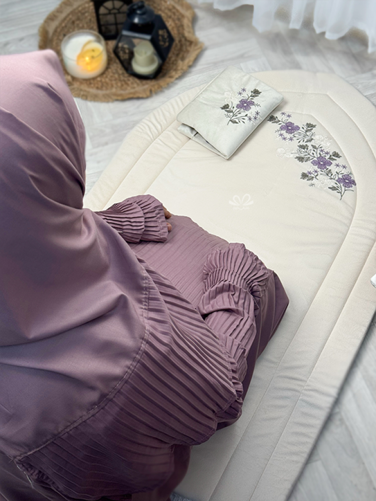 طقم راحة الروح جلباب صلاة مع سجادة وبيت مصحف (لون موف)