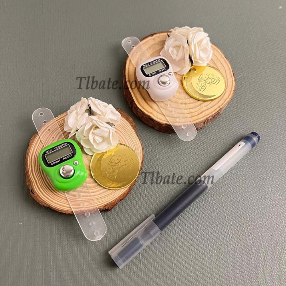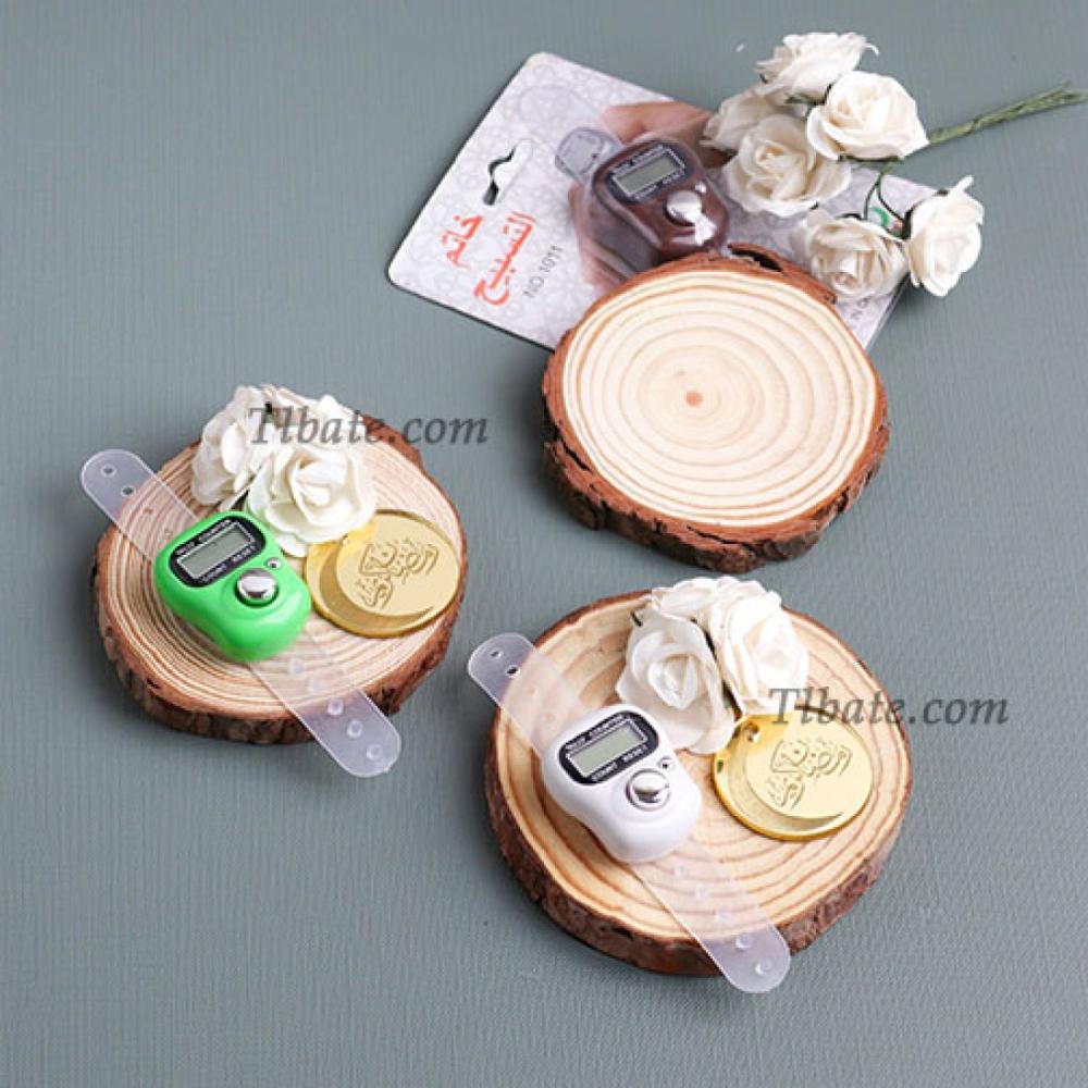 خاتم تسبيح تنسيق بالخشب الطبيعي ولوقو هلال رمضان