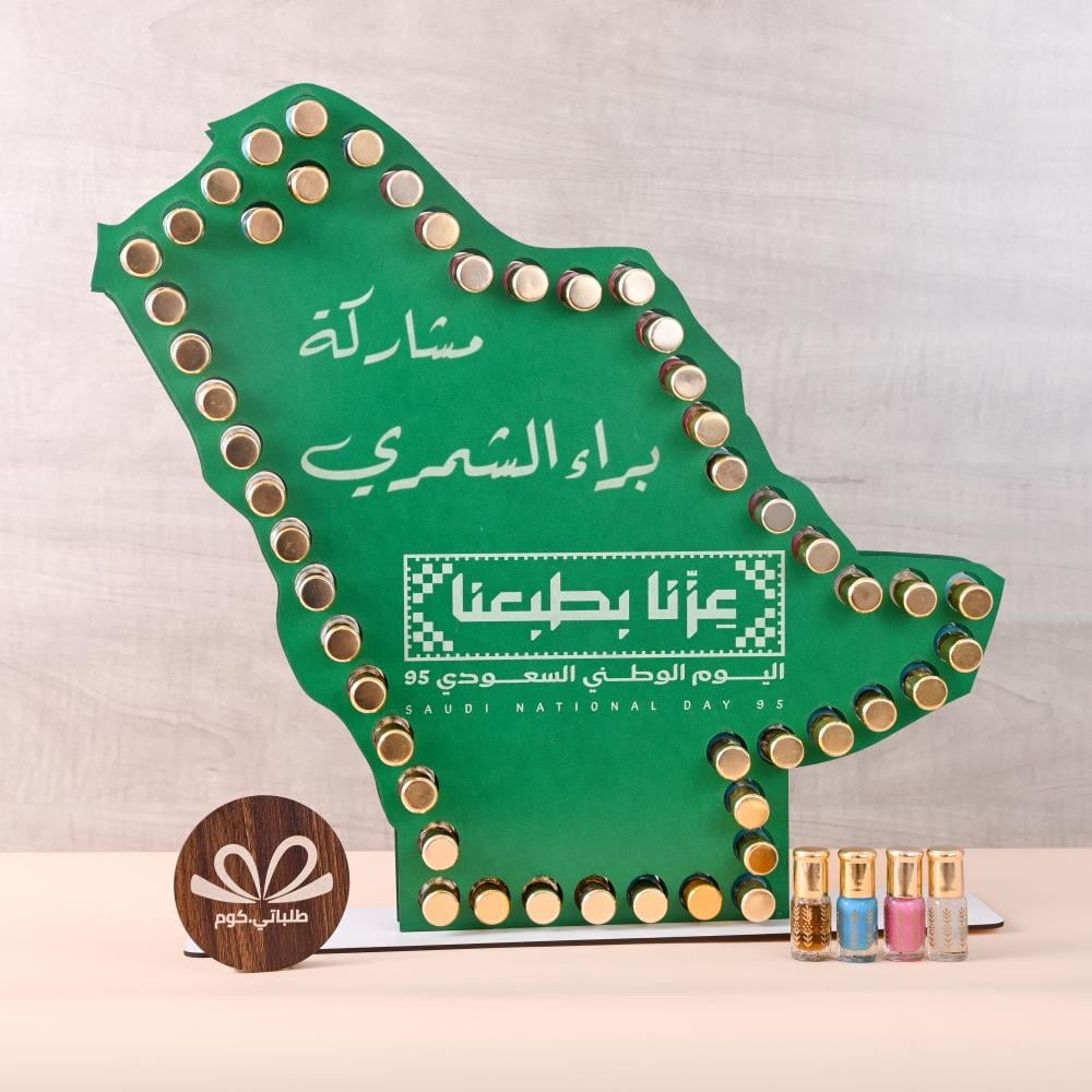 ستاند خريطة المملكة مع شعار اليوم الوطني| 50 تولة مسك (عبارة حسب الطلب)