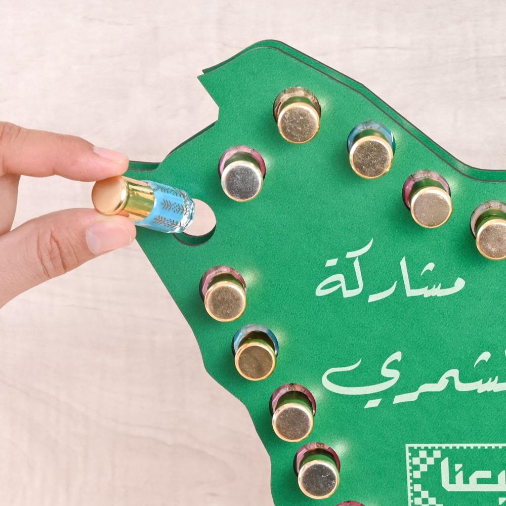 البكج يشمل ستاند من الخشب لون اخضر شكل خريطة المملكة .