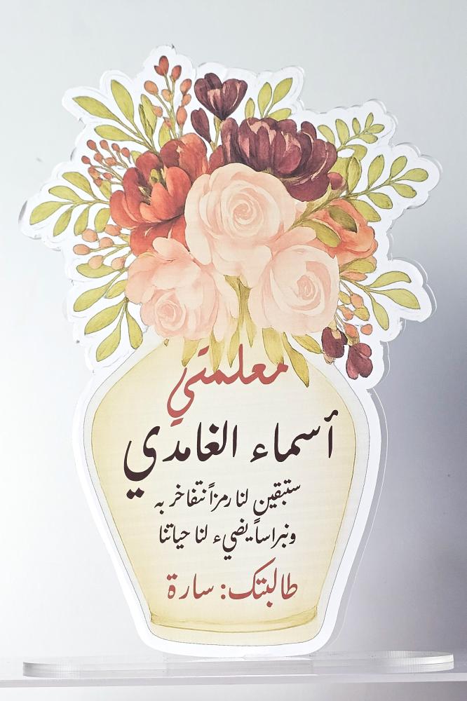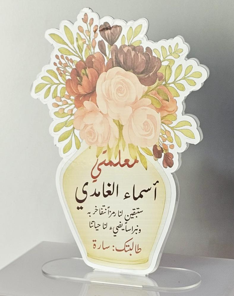 عبّر عن امتنانك وتقديرك لمعلميك بطريقة فريدة وأنيقة مع هذا الدرع المصنوع من الأكريليك عالي الجودة، بتصميم إبداعي على شكل باقة ورد رمزية، تجمع بين الجمال والرقي.