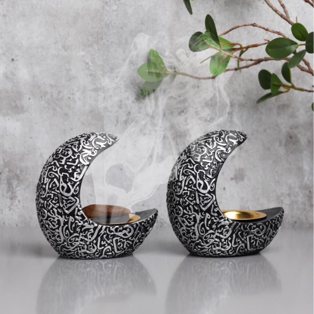 مبخرة هلالية منقوشة بالحروف الأبجدية لون فضي