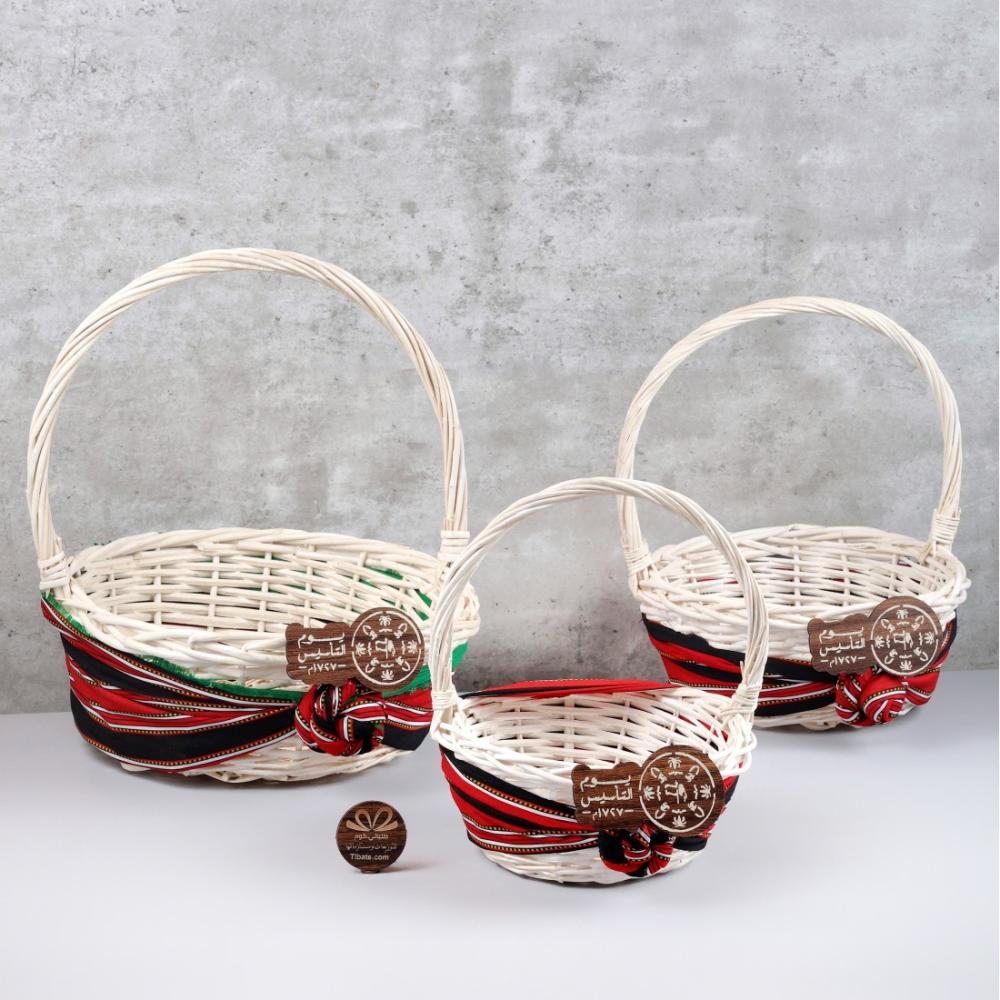طقم 3 سلات خوص بلون أبيض مع قماش بألوان تراثية لإضفاء لمسة من الأصالة والتميز لتوزيعاتك