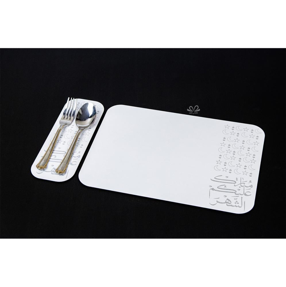 قاعدة صحون وملاعق مبارك عليكم الشهر | خشب أبيض - صحون تقديم رمضانية