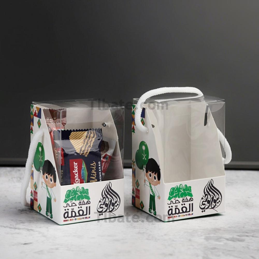 علبة توزيعات اليوم الوطني أولاد -شفافة بيد حبل- عدد(4قطعة)