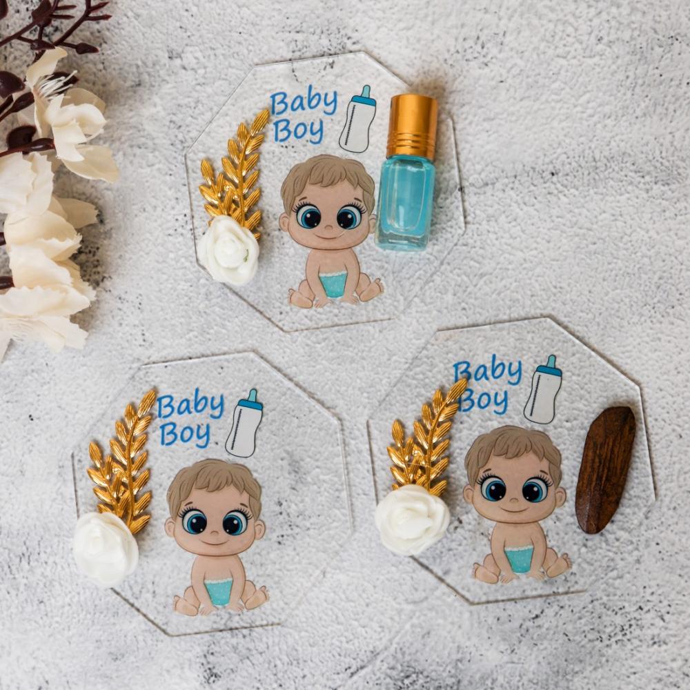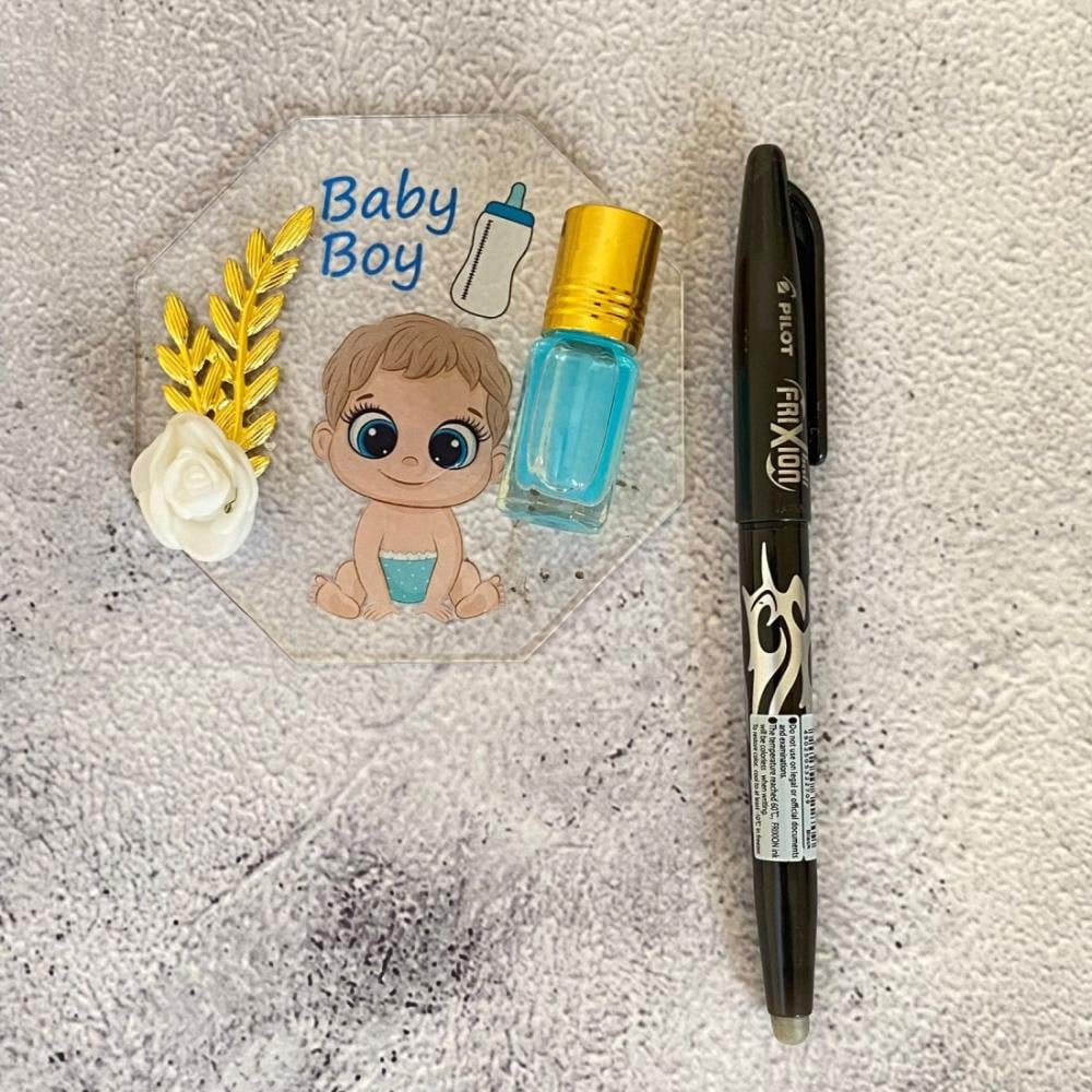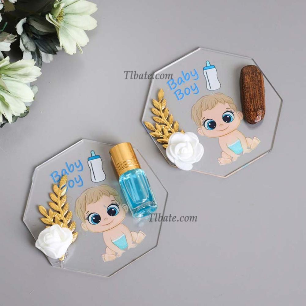 مادة الصنع: اكريليك مقاس القاعدة: (10 سم) لون القاعدة: شفاف ملون بامكانك إضافة تولة مسك او عود لتكون منسقة و جاهزة للتقديم .