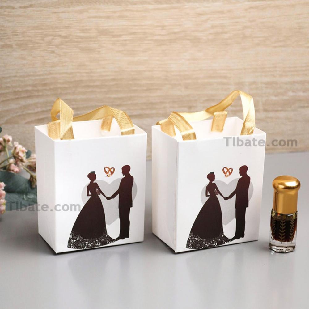كيس ميني زواجات أبيض ونقش أسود درزن(عدد12قطعة)