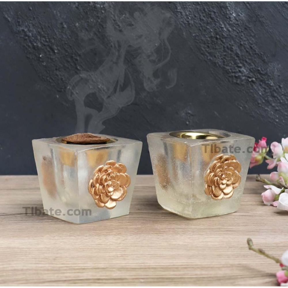 3.47 $مبخرة لون ثلجي بتصميم وردة ذهبية حجم المبخرة : 6سم * 6سم * 5سم اللون: ثلجي .