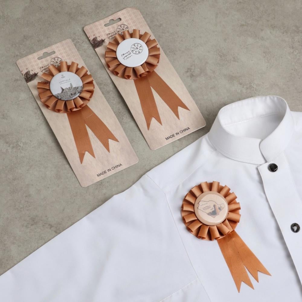بروش قماشي ليوم التأسيس مادة الصنع: قماش المقاس: طول:15سم * قطر الدايرة:8سم